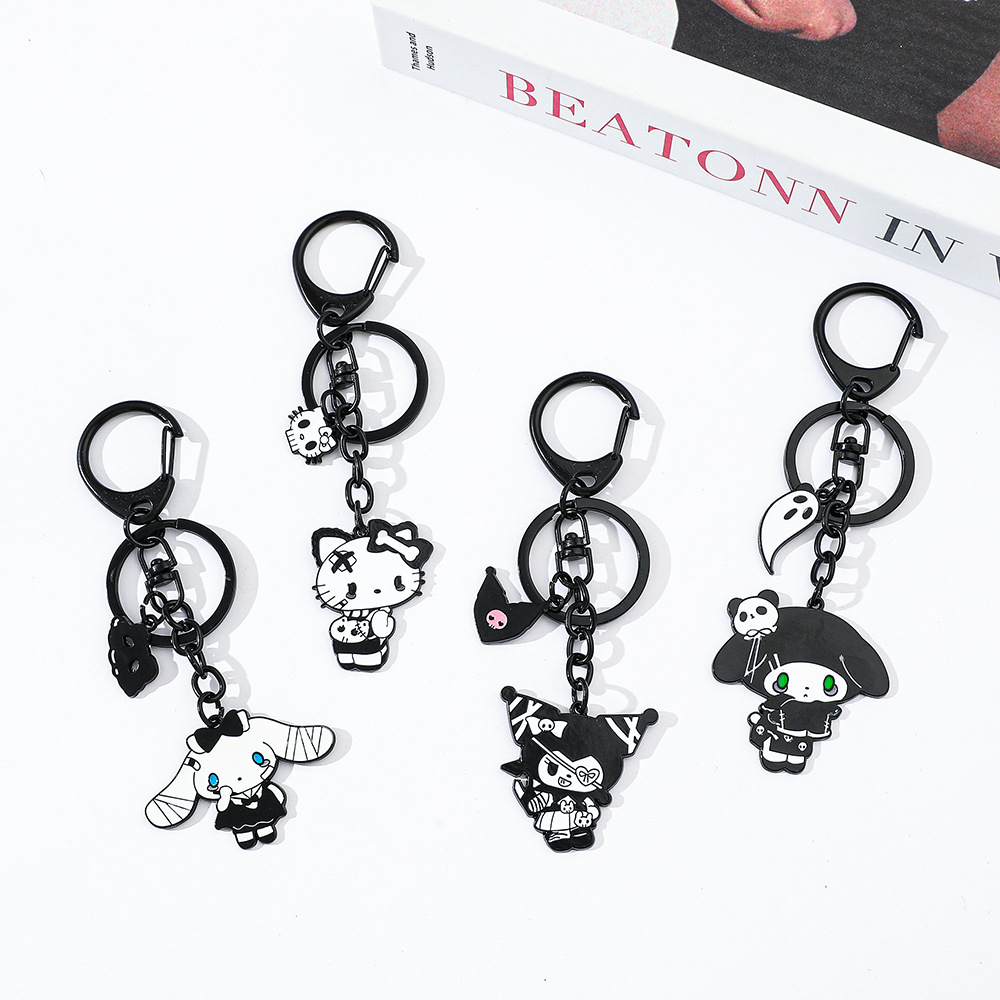 国境を越えた新商品アニメ暗黒風ハローキティ合金キーホルダーペンダント白黒kt猫の親友ペンダント