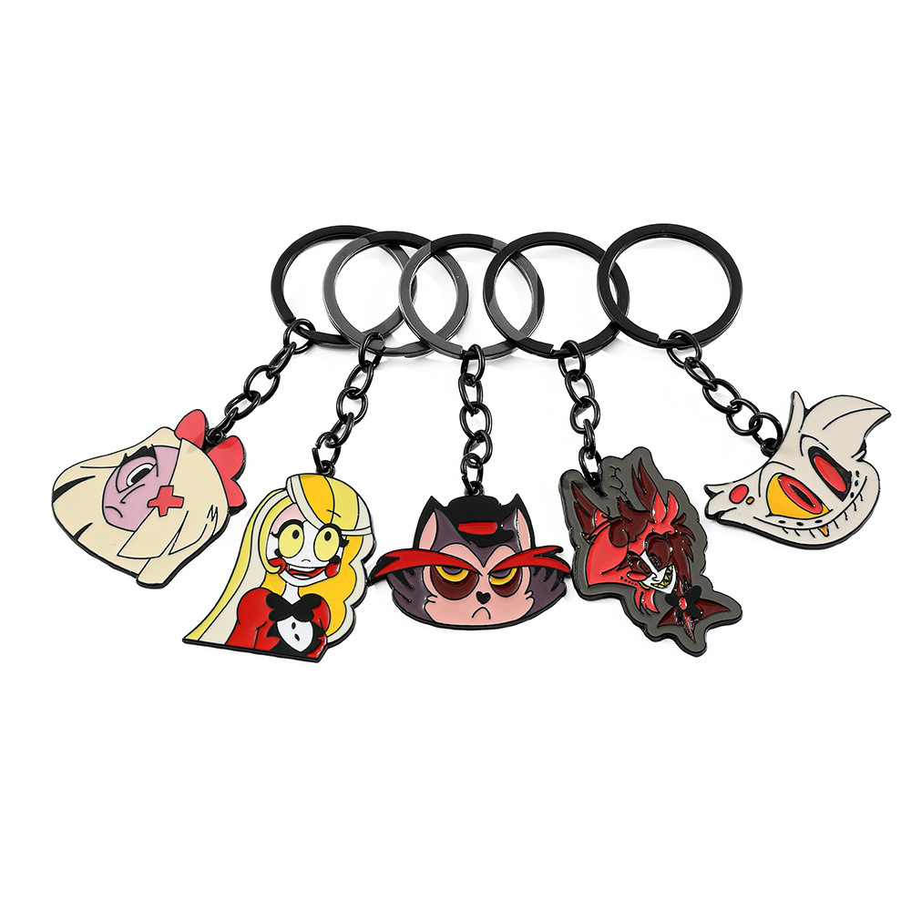 日本のアニメのハザビンホテルの地獄のホテルの周辺の鍵は悪魔の猫のペンダントのキーチェーンを掛けます。