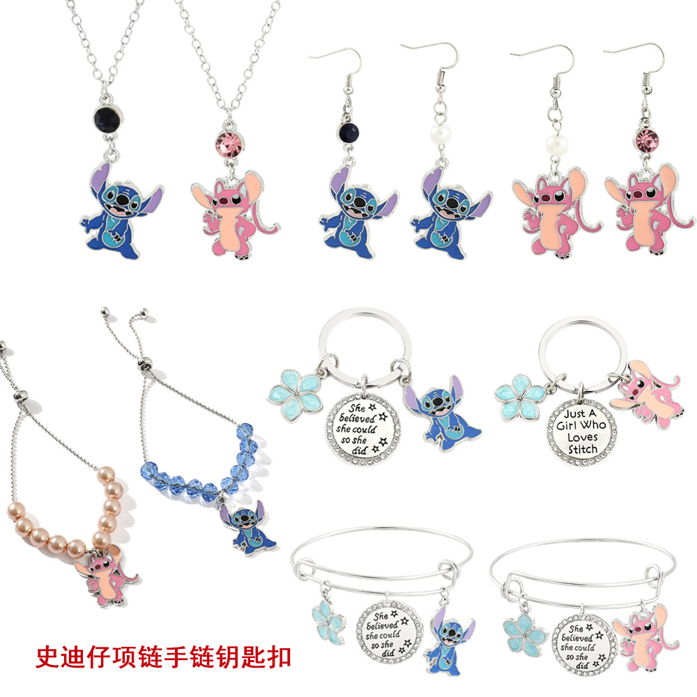 アニメの周辺のスティッチのキーはアンジーのスティッチのカップルのネックレスの漫画のペンダントのビーズのブレスレットの卸売りを掛けます。