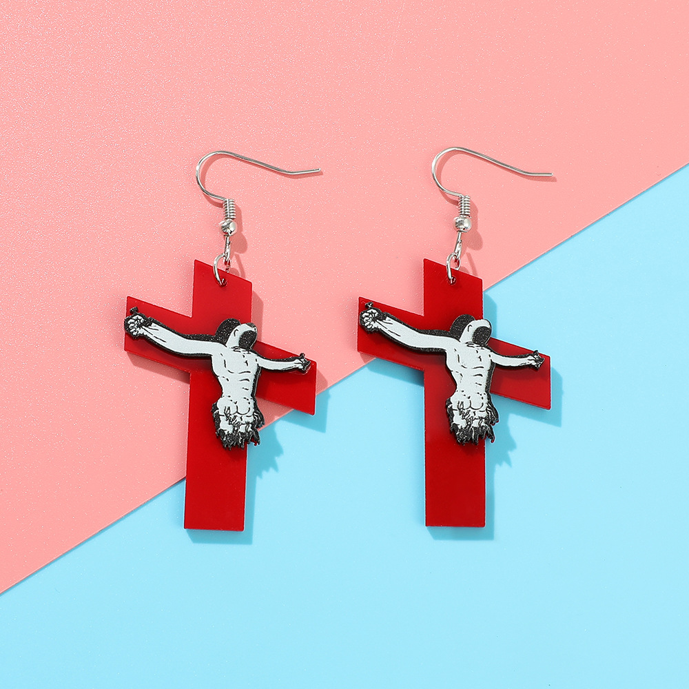 万圣节红色十字架白色幽灵恐怖耳饰创意潮流欧美饰品批发吊坠