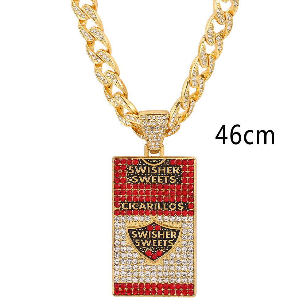 时尚个性吊坠项满钻镶钻古巴链配饰盾牌潮流链货 跨境货源批发