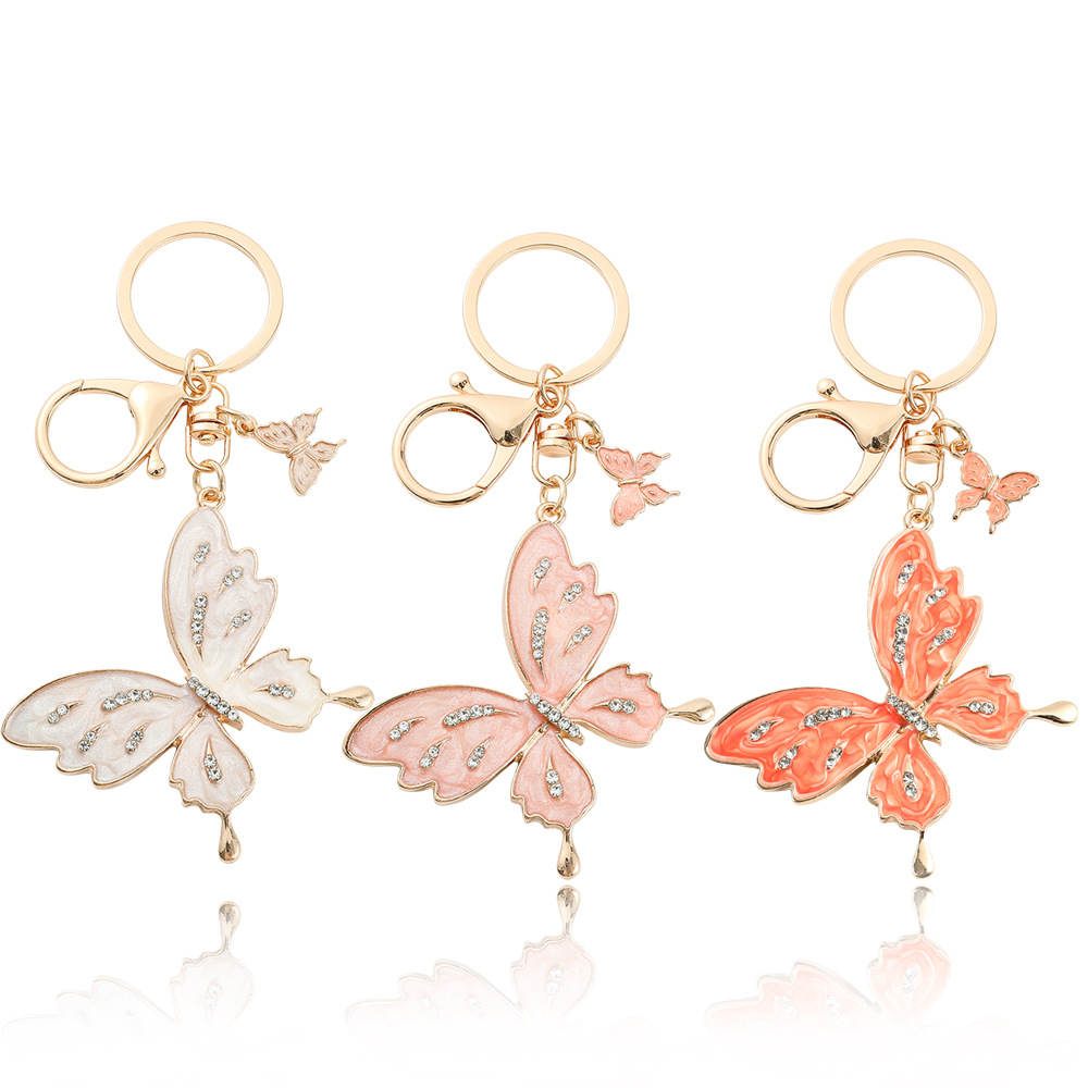 韓国版のよく売れている蝶のキーホルダーの高級な翼の油の真珠のペンダントの美しい車のキーホルダーの卸売り