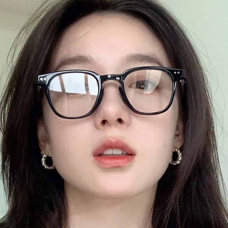 すっぴんの神器の専門は青い光の放射の黒い枠のメガネの女性の型の平光の鏡を防ぎます。