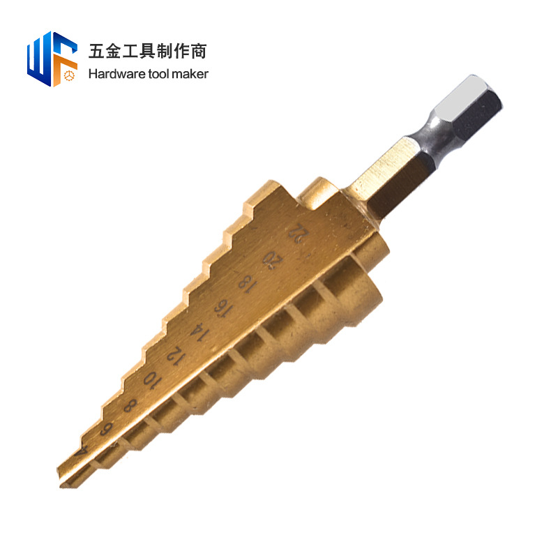 宝塔ドリル4-22六角柄チタンメッキ懐中電灯ドリル穴拡げドリル卸売り穴あけツール高速鋼階段ドリル