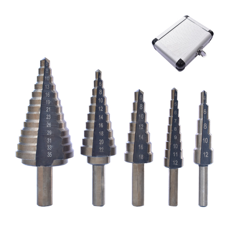 5点セット黒黄宝塔ドリル高速鋼ドリル穴拡げ塔型ステップドリルセット三角柄階段ドリル