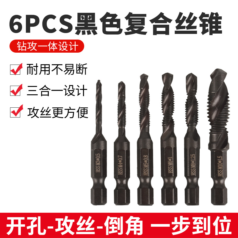 六角ハンドル複合タップ多機能穴あけ、タッピング、面取りオールインワンタップツールセットスパイラルタップ