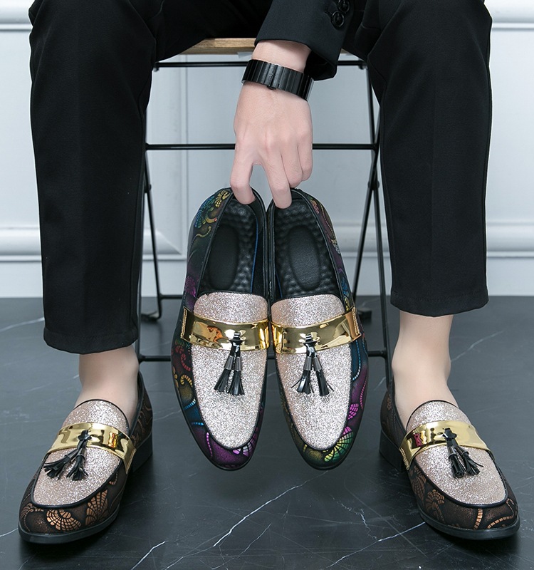男性の先の尖ったペンキの明るい皮の楽福の靴のフリンジの怠け者の足の布ロックの小さい革靴のカジュアルな男性の靴