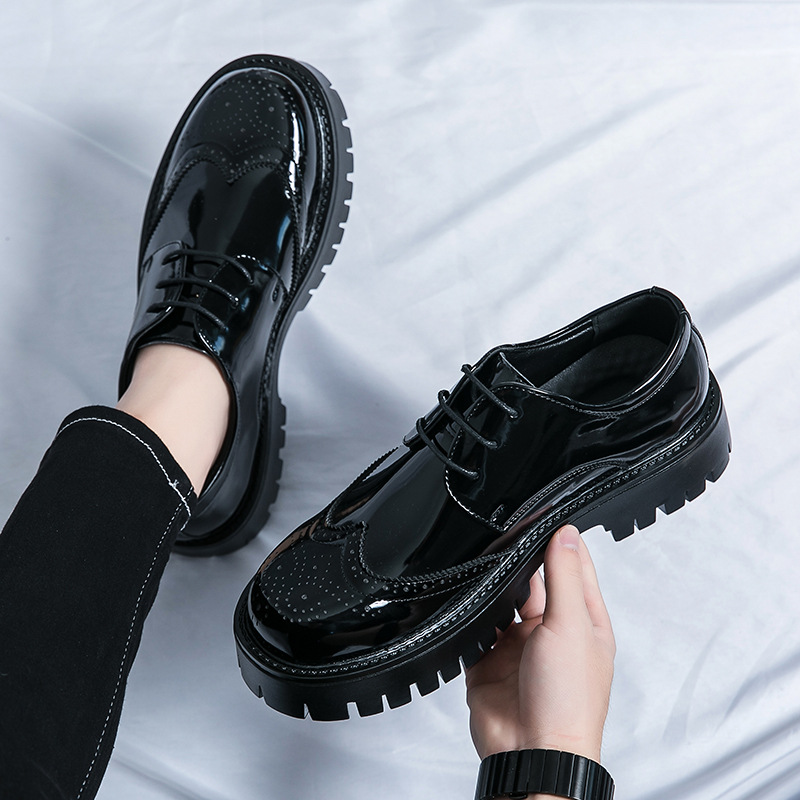 格好いいネットの厚い底は高くなって靴の角の頭のカジュアルな革靴の男性の個性のスタイリストの靴の明るい皮の明るい顔の楽福の靴