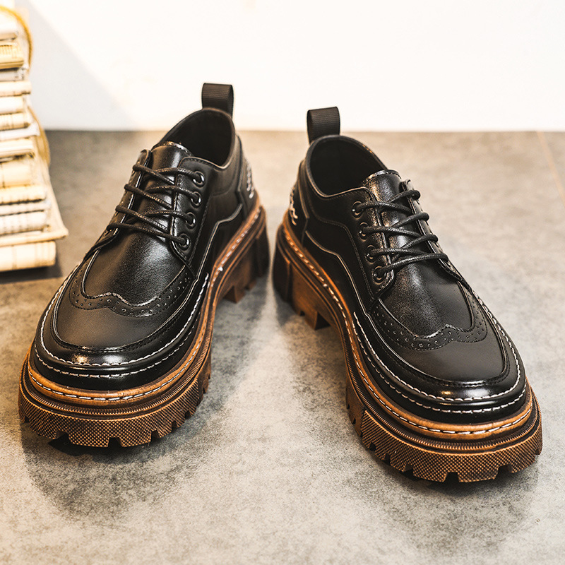 メンズ革靴2024新作秋ビジネス正装英倫レトロカジュアル男性靴厚い底高くなった大頭ファッションシューズ