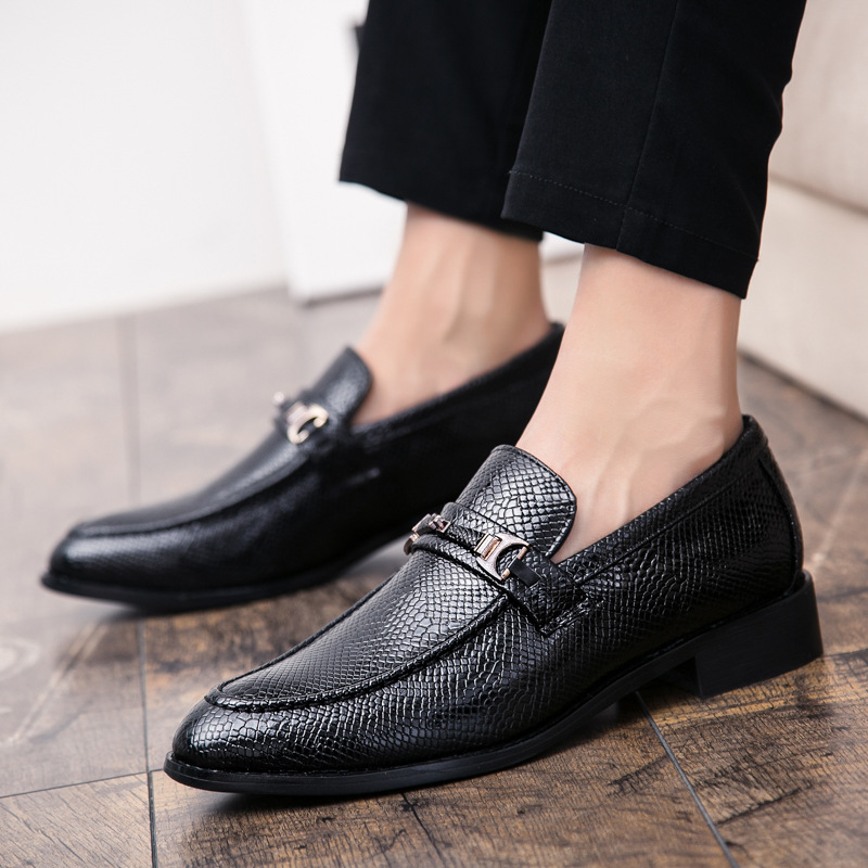 蛇の皮の紋様のファッションの先の1足は怠け者の楽福の靴の潮流の男性の正装のビジネスのカジュアルな英倫の小さい革靴を漕ぎます。
