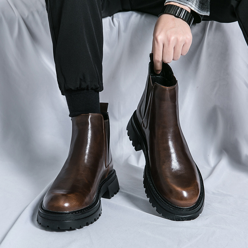 マーティンブーツ男高組冬英倫風茶色煙突チェルシーブーツ男性靴中筒カジュアルダービー靴