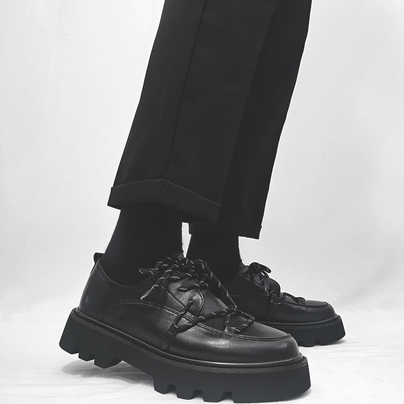 Ins港風雅痞底小革靴英倫円頭ビジネス正装徳比靴日系復古高男靴