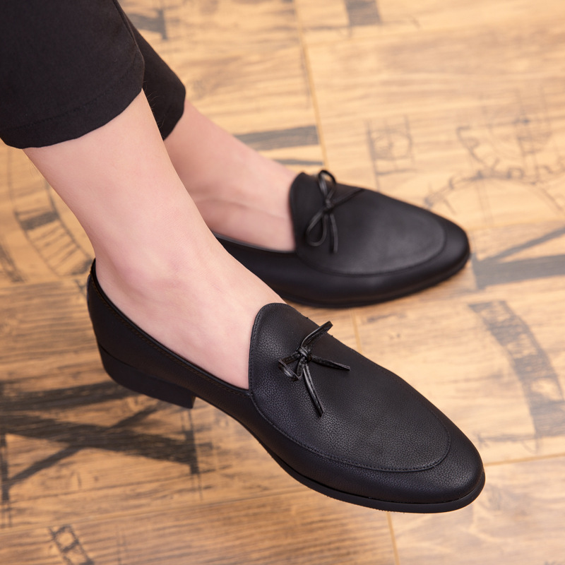 男性の英倫本革カジュアルな先の小さい革靴秋の韓国版青年楽福靴