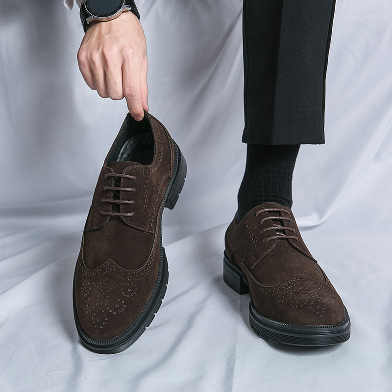 革靴男性クロスボーダー大きいサイズ革靴春秋新作レザーシューズ先先ブローメンズシューズ