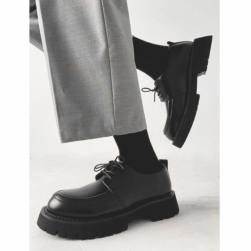 英倫の黒いカジュアルな小さい靴の韓国版insは格好いいです。