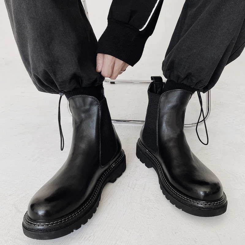 チェルシー靴男性本革英倫風タバコ筒高組靴冬新型黒カジュアル中邦マーティン男靴