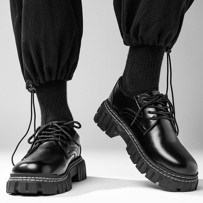 冬のレジャー靴男黒英倫風工装ビジネス正装2021新型高軟底大頭潮靴