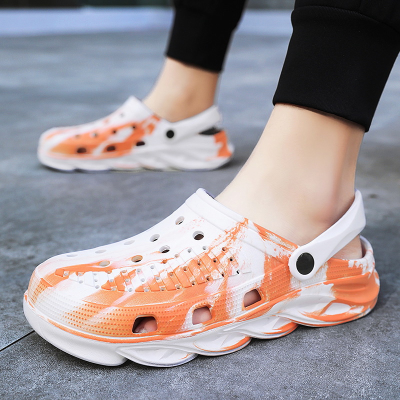 2022夏の男性のスリッパの厚い底のサンダルのevaカップルの穴の靴の韓国版の潮流の麻の花の底の大きいサイズのビーチの靴