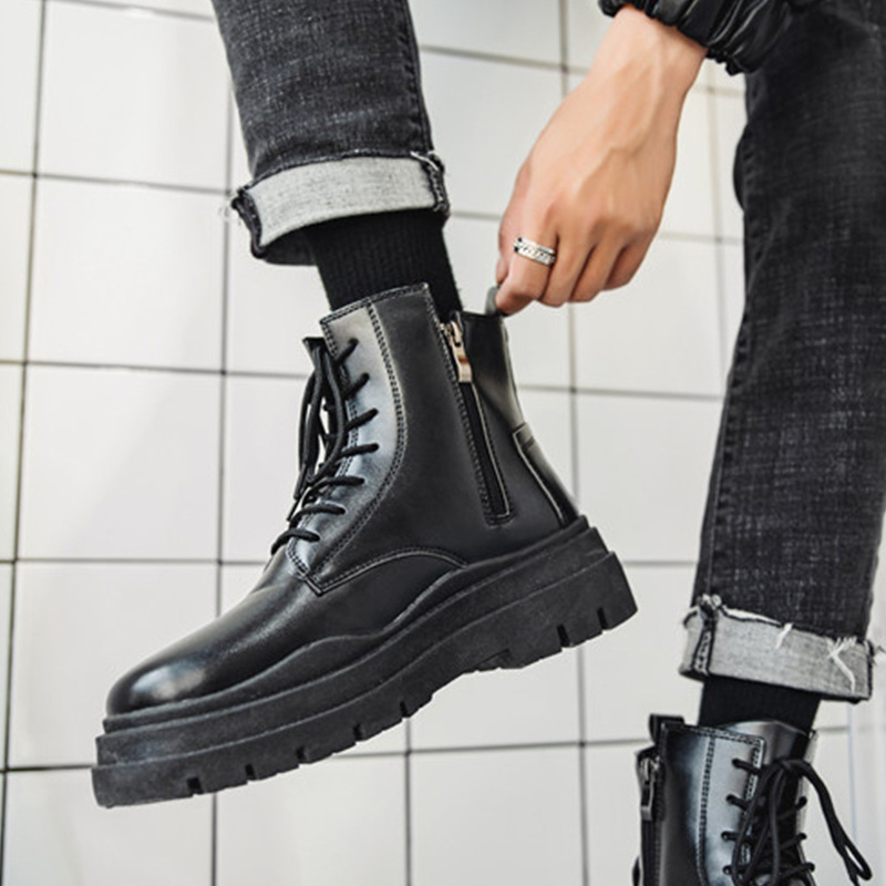 厚い底の高くなるマーティンの靴の男性の高組の2021新型の英倫風の黒色の男性の靴のレジャーの防水の機関車の皮の靴