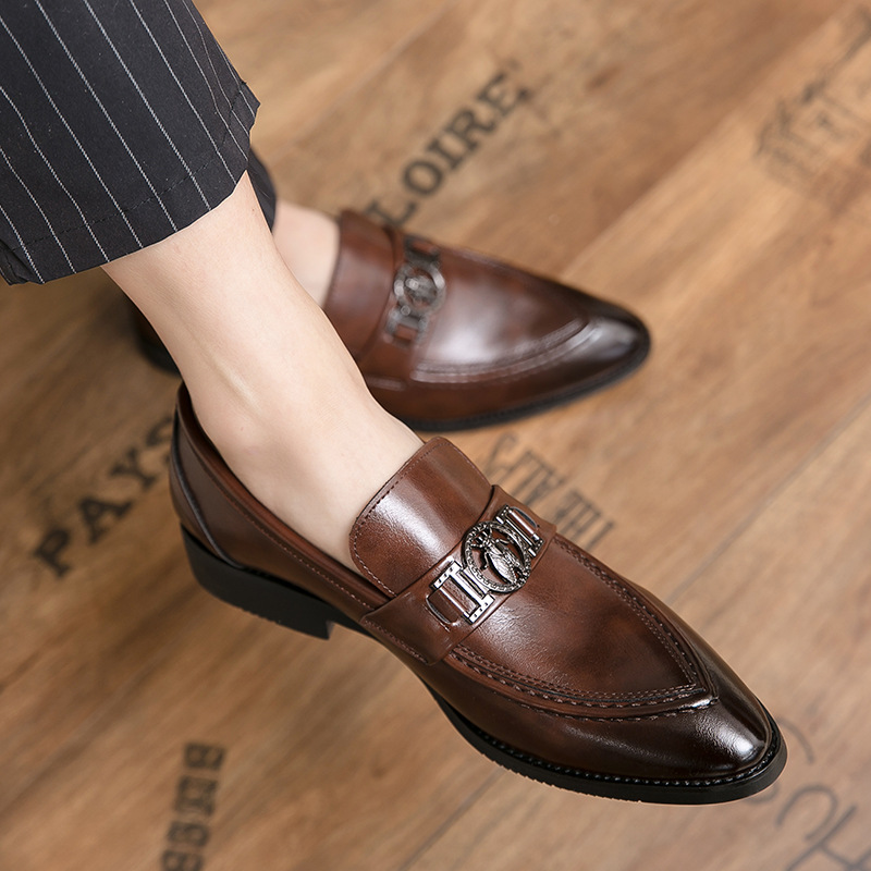 先の尖った馬丁の靴の男性の靴の中で韓国版の男性の靴を手伝います。
