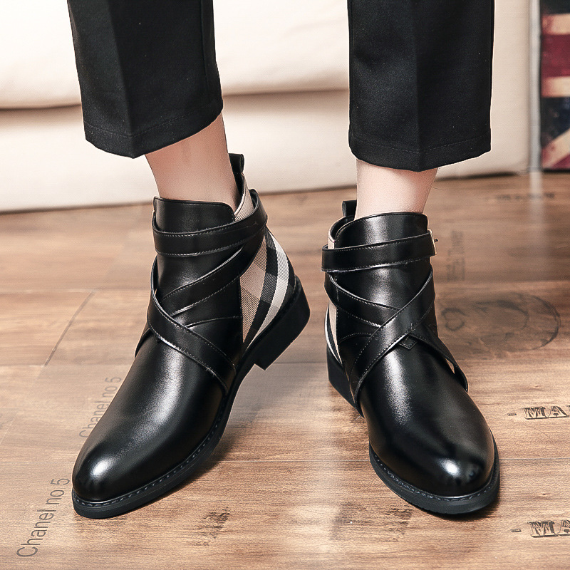 男性の新しいファッションの足は青年の黒色の靴の英倫を踏んで高くなります。