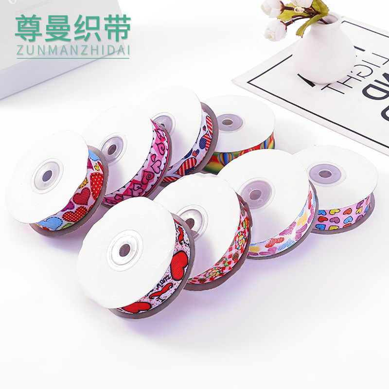 卸売り現物愛プリントポリエステルリブリボン服装補助材料包装リボンメーカー直供