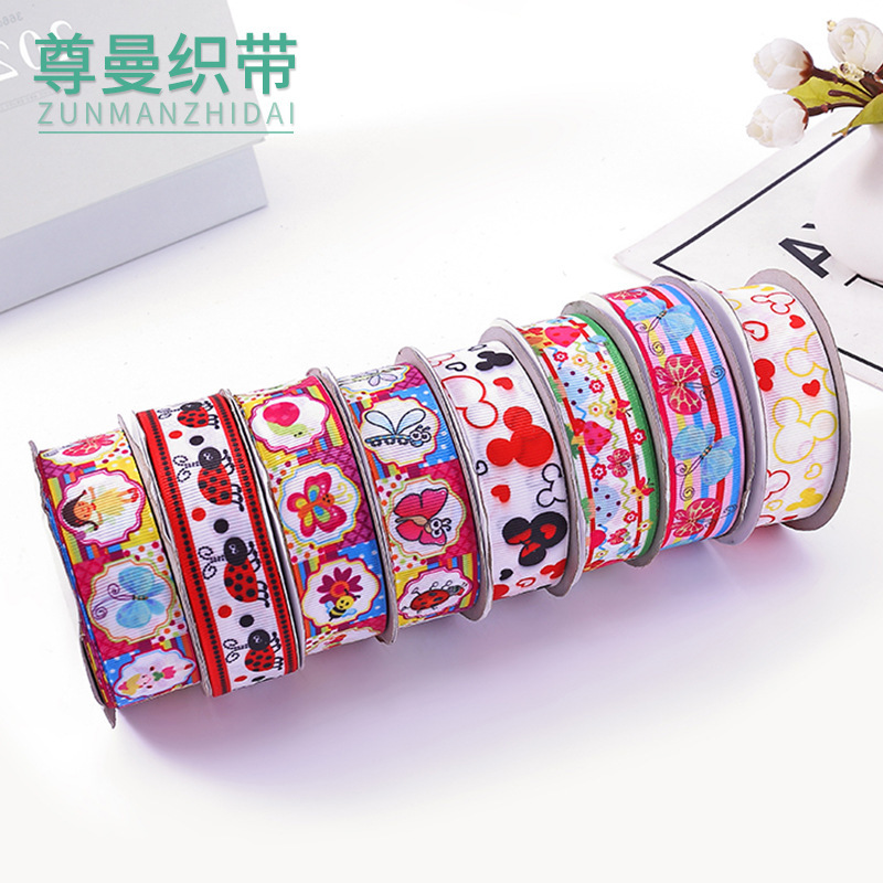 メーカー直供羅紋アニメプリントリボンプレゼント包装ポリエステルエンボス包装補助材料水杯帯