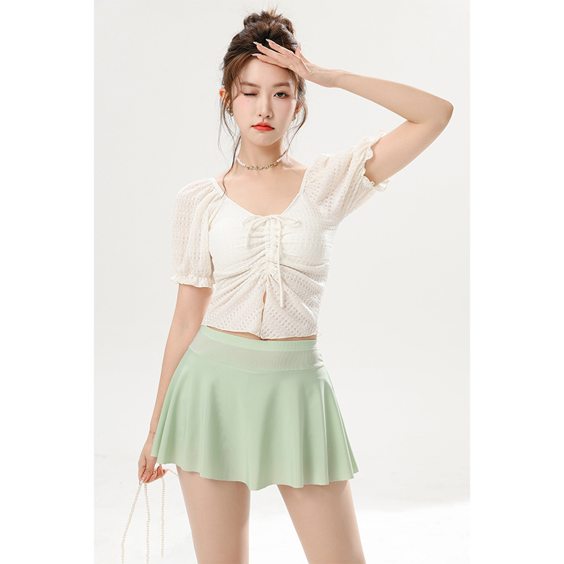 新しい女性のスプリットスカートツーピースセット女の子のための新鮮な保守的な痩身ビーチ温泉休暇水着卸売