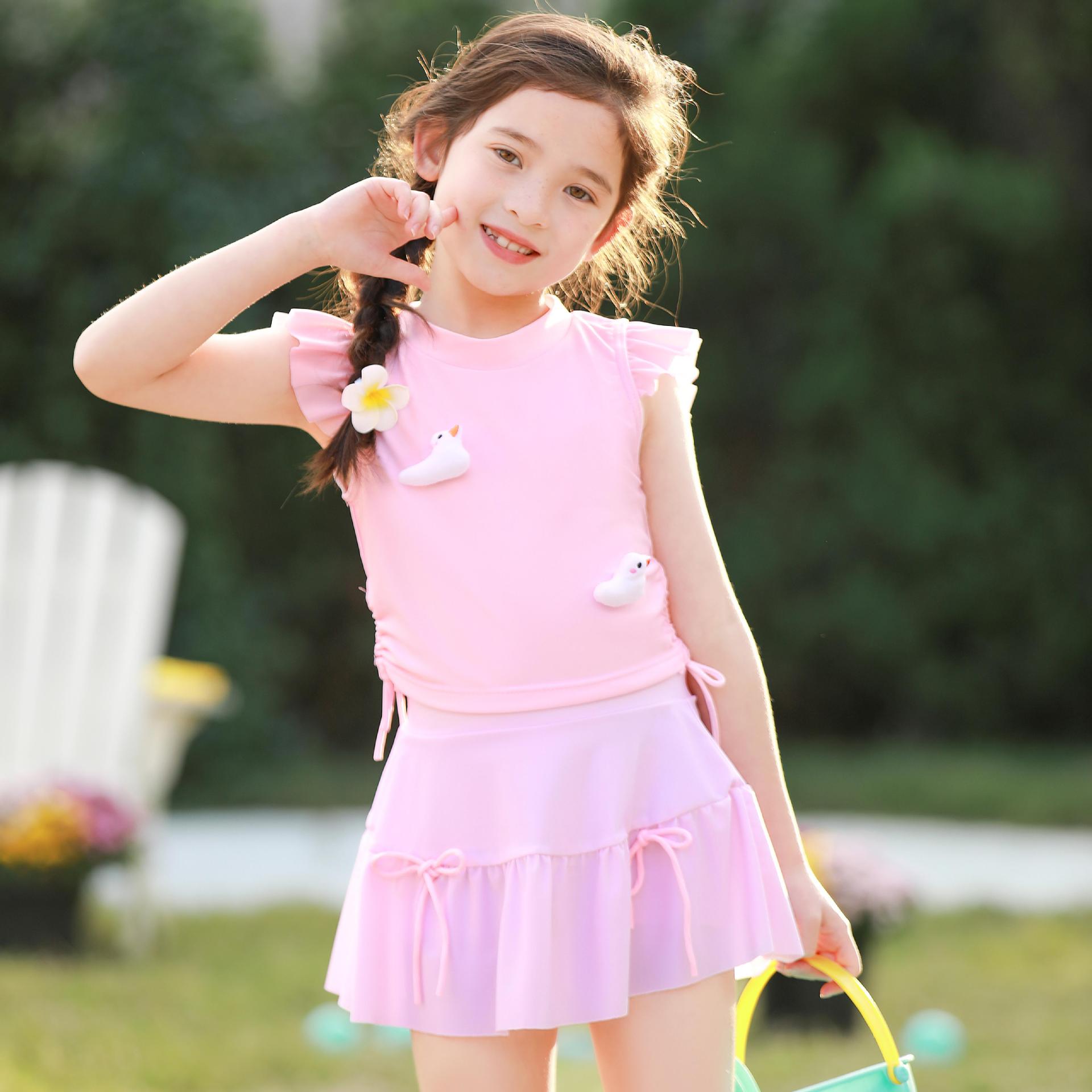 夏の新しい女の子の女の子のかわいいプリンセススタイルのスプリット水着小中型子供用水着高弾性通気性水着
