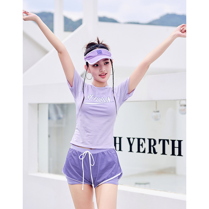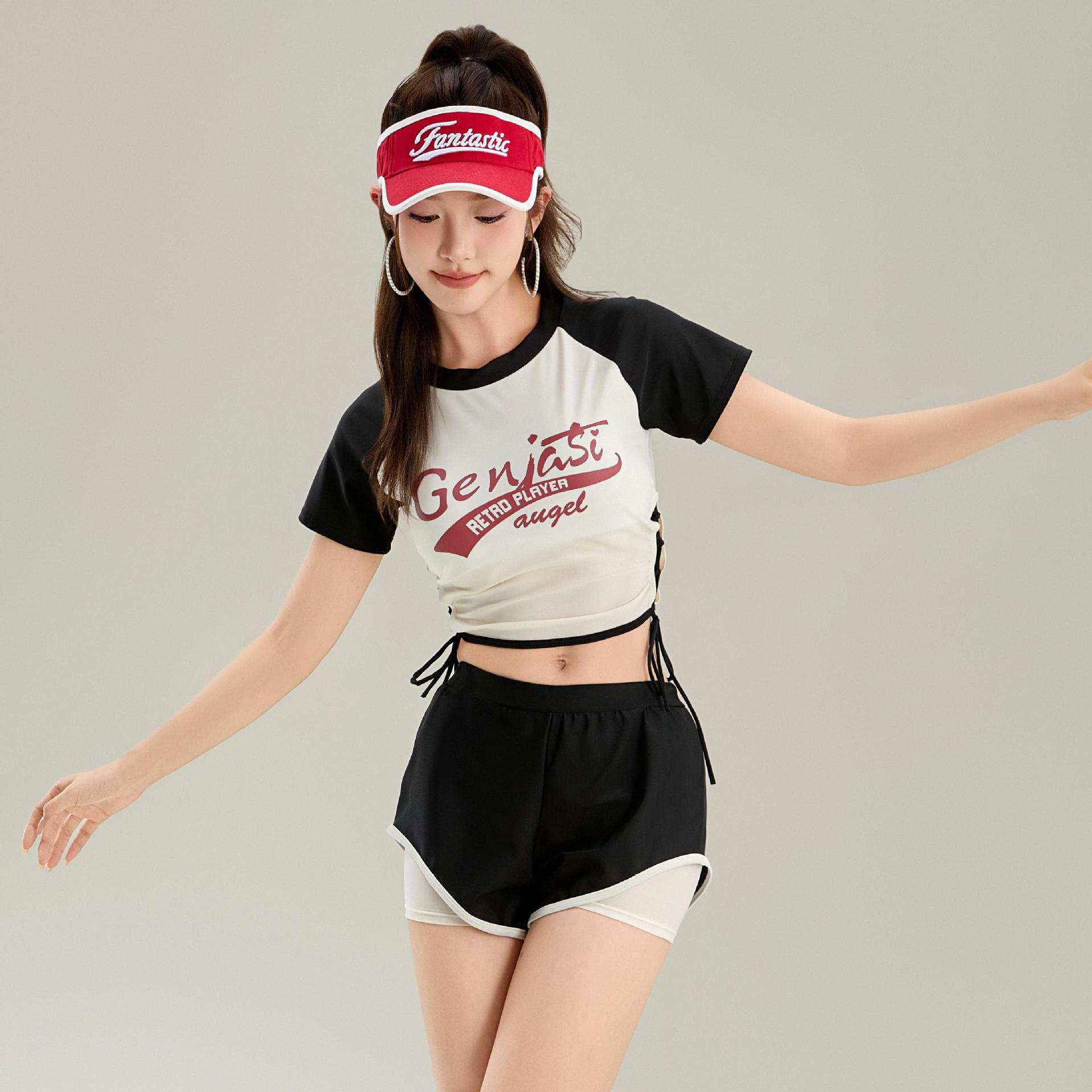 新型レディーススプリットスポーツカジュアルパンツ2点セット保守的で痩せやすいビーチ温泉リゾート水着女性卸売り