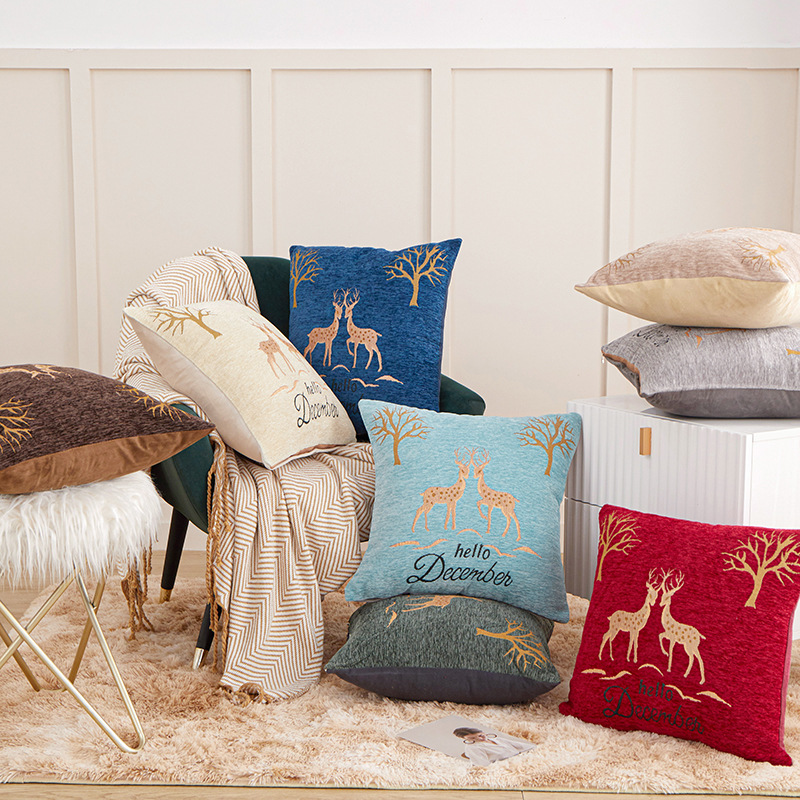 南通の家庭用繊維メーカー製、シェニール織りの枕カバー、45x45サイズ、車載用枕、ベッドサイド用枕、刺繍入り抱き枕