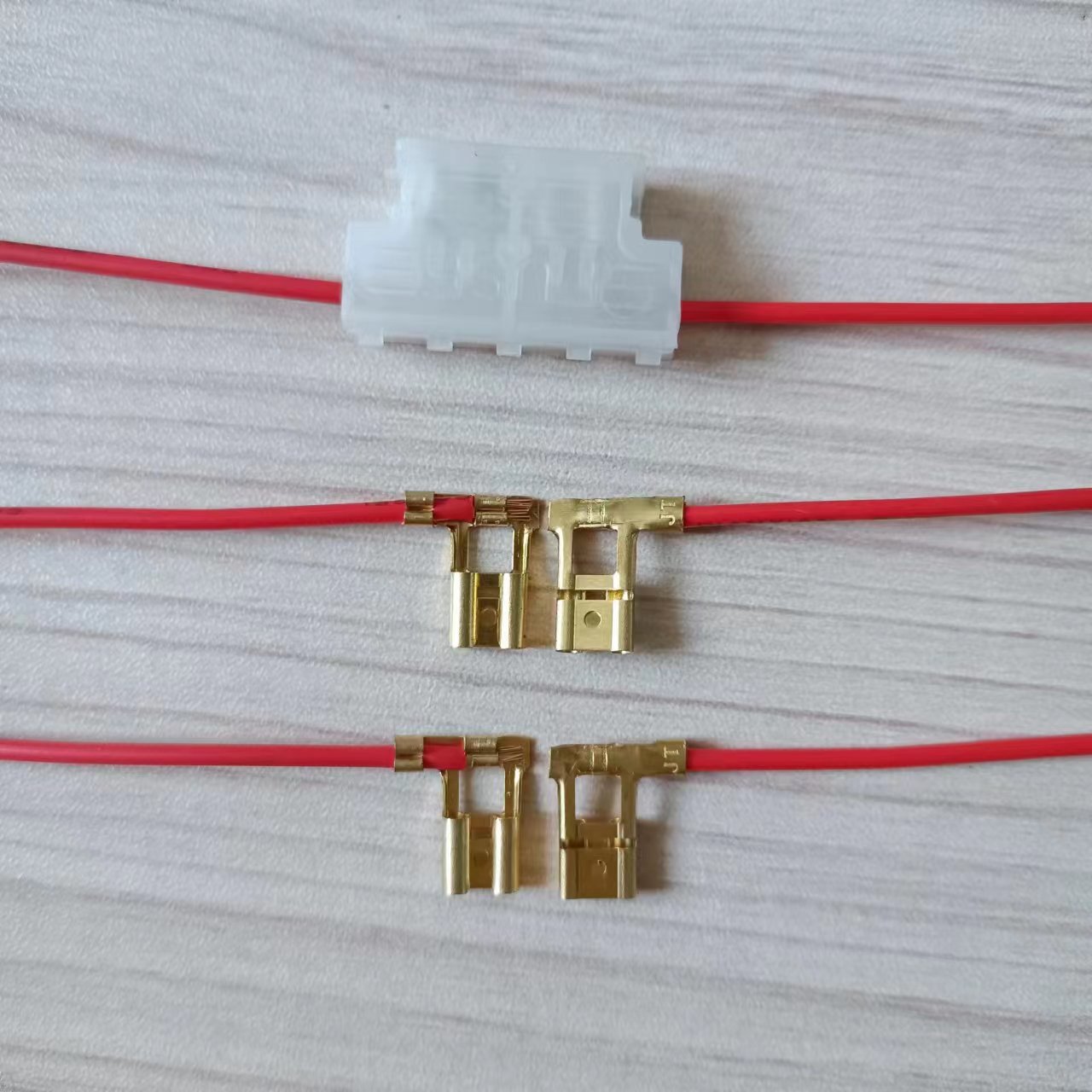 2.8トランペット旗型挿しバネ自動車は電気ヒューズ端子110エルボを取って糸金物端子をつないでいる
