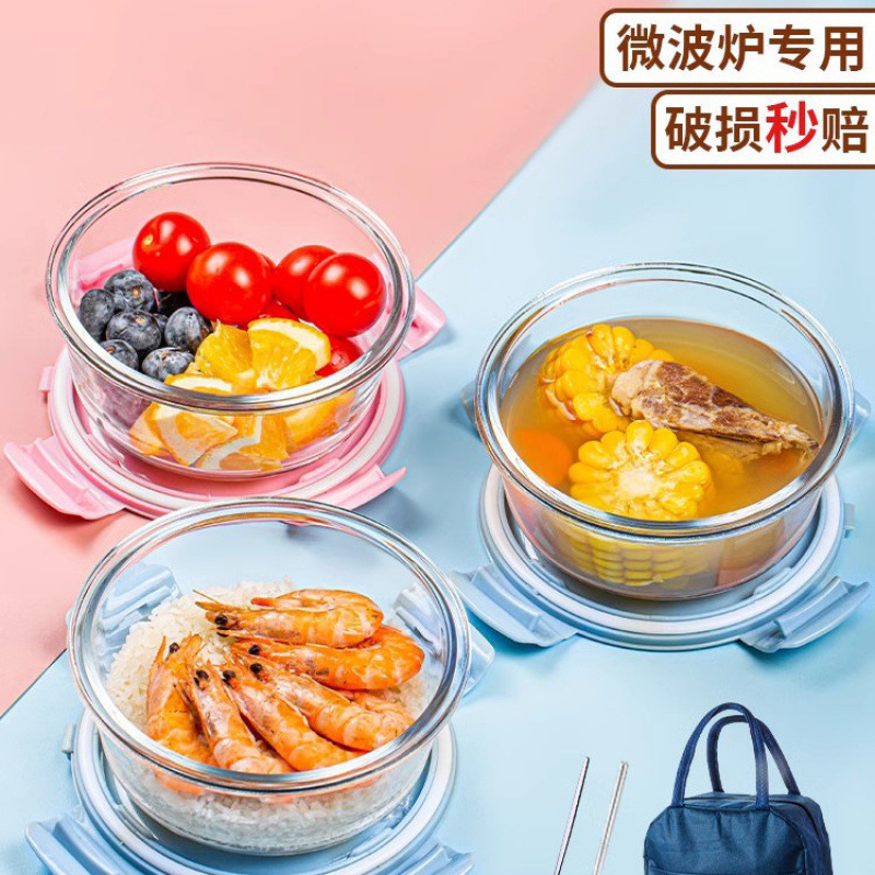 玻璃饭盒可微波炉加热学生上班族带盖餐盒密封保鲜分隔便当碗迈傲