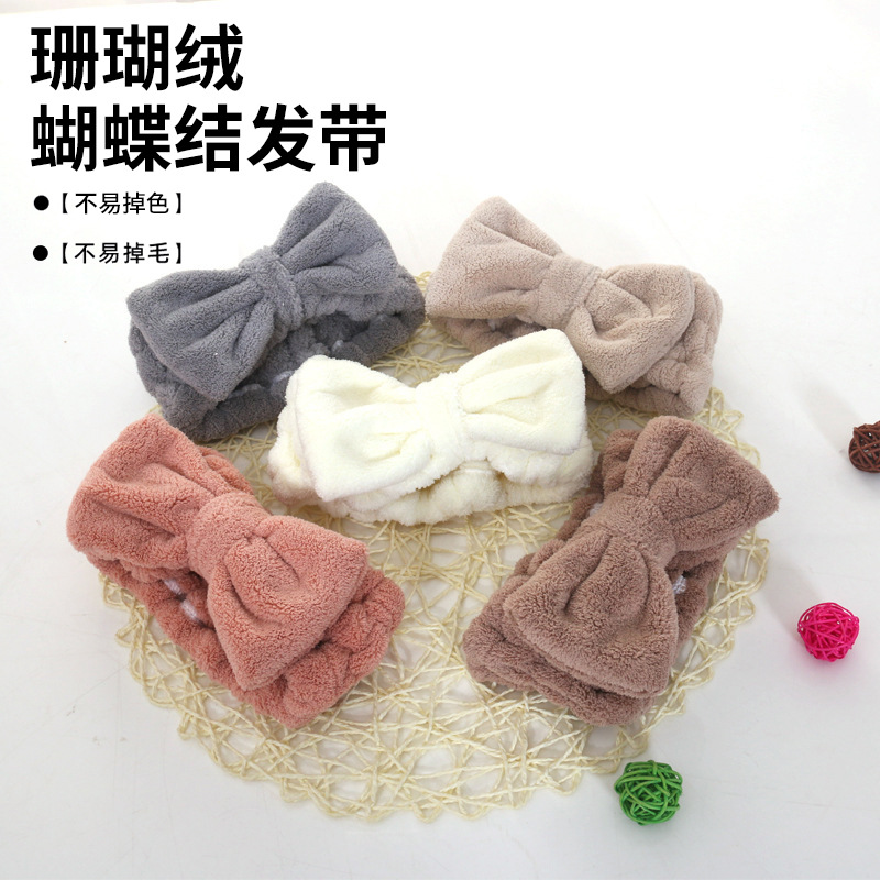 韓国のコーラルベルベットの蝶結びのヘアバンドは顔を洗って化粧します。