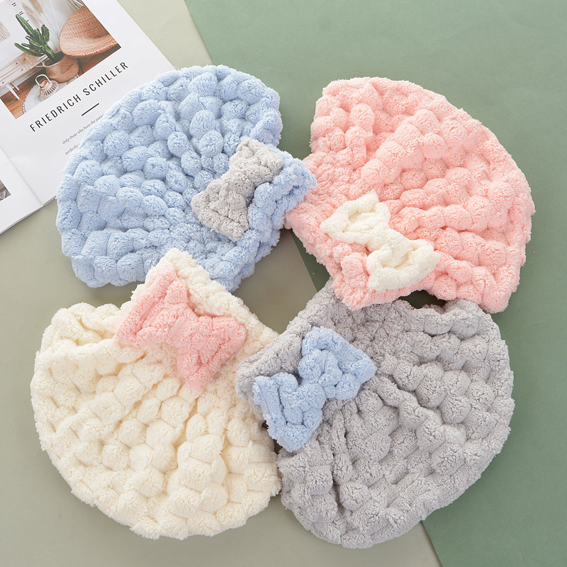 欧馬仕の新型の雲の毛は色の蝶結びの王女の帽子の雲の格のサンゴの毛の吸水の乾いた髪の帽子にぶつかって卸売りします。