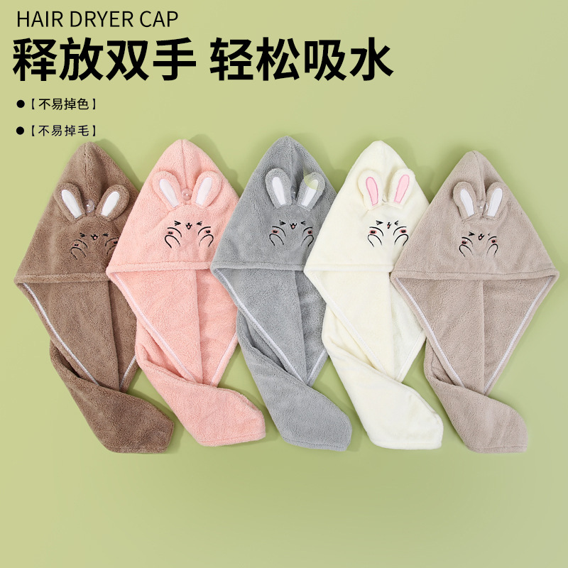韓国版ins風サンゴのぬいぐるみのウサギの耳の乾燥した髪の帽子の柔らかい吸水のウサギの刺繍の乾燥した髪の帽子の工場は卸売りします。
