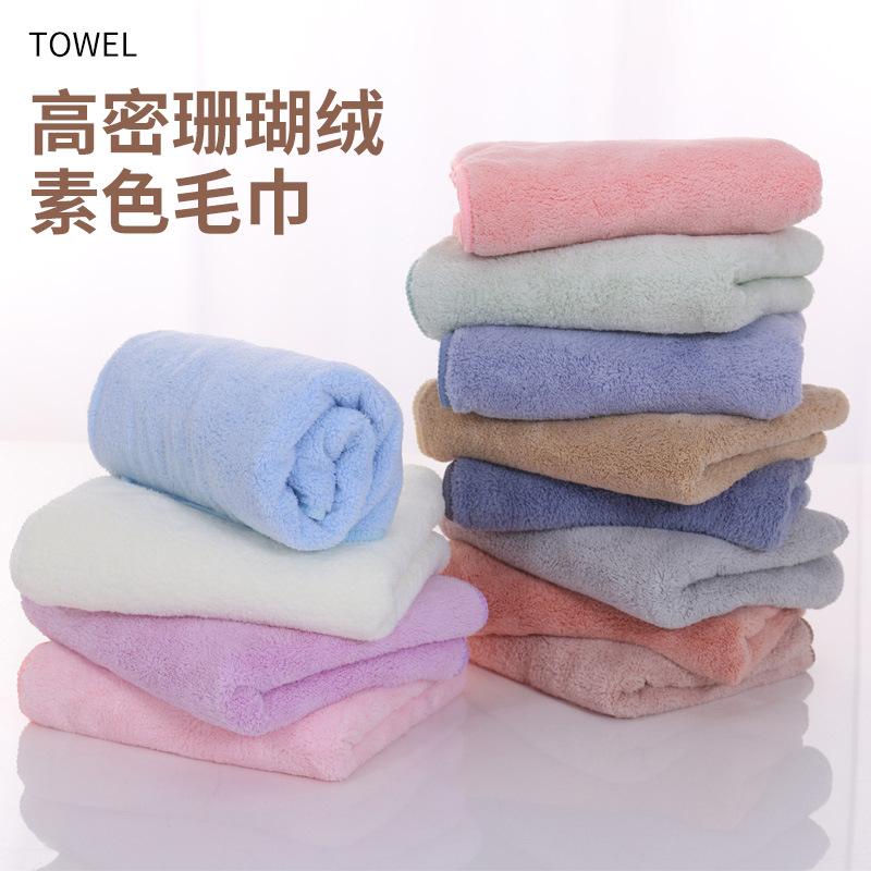 純色の高密な厚いサンゴの毛の家庭用タオルは吸水して毛のバスタオルを落とさないで顔のタオルの速乾のメーカーの卸売りを拭きます。