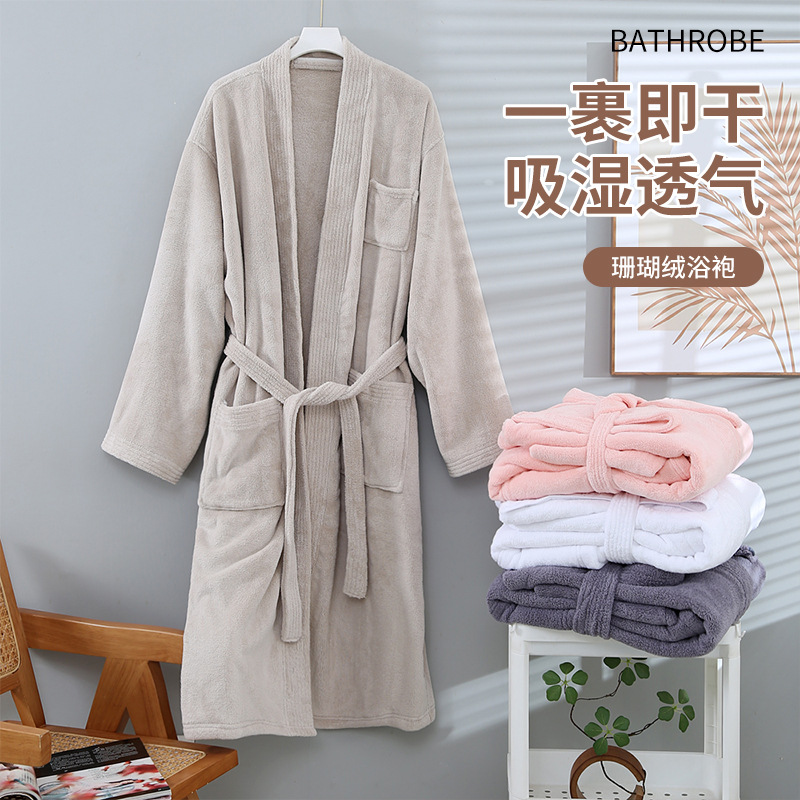 オールシーズン対応の新しいコーラルベルベットバスローブ、吸水性、速乾性、柔らかい、成人男性、カップルナイトガウン、女性メーカー卸売