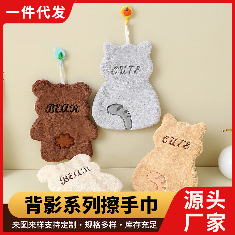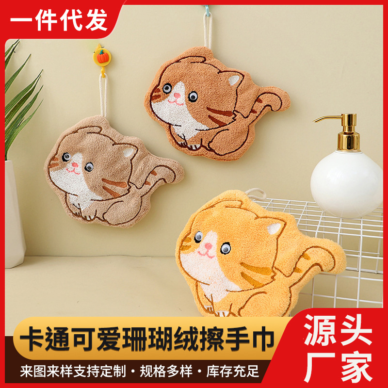 工場スポット漫画子猫コーラルベルベットハンドタオルハンギングハンドタオルバスルームキッチン雑巾卸売