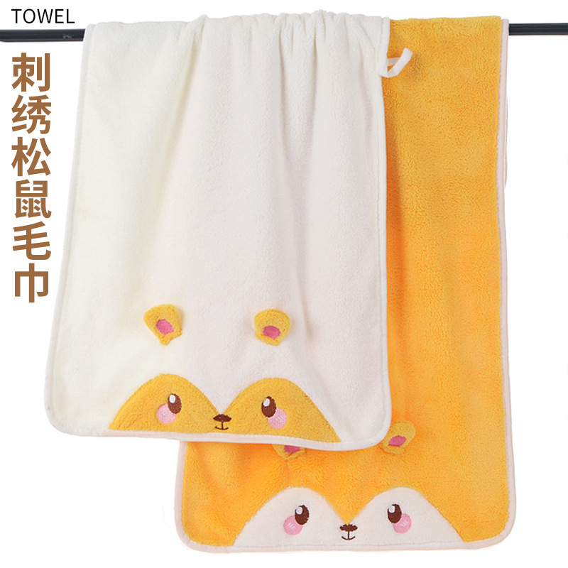 サンゴのタオルの漫画の刺繍のタオルのスカーフの乾いた髪のタオルの柔らかい吸水の縁のタオルの工場は卸売りします。