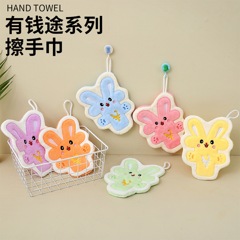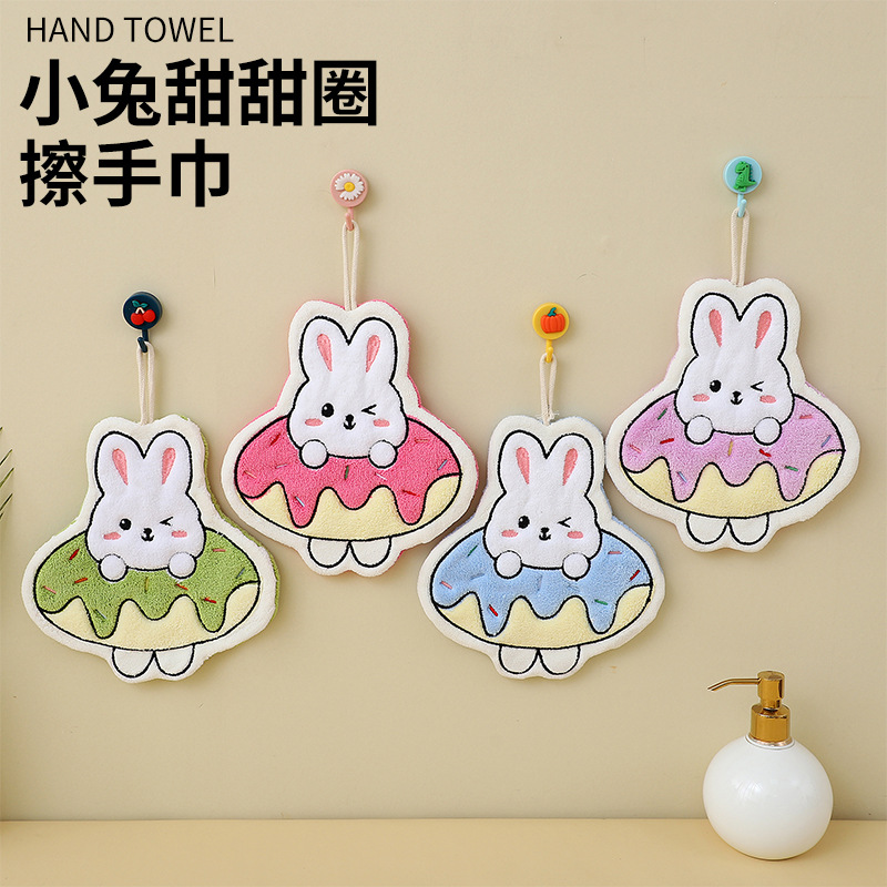 国境を越えたサンゴのベルベットが手ぬぐいを拭くウサギドーナツ吊り式トイレ吸水タオル成人児童がハンカチを拭く
