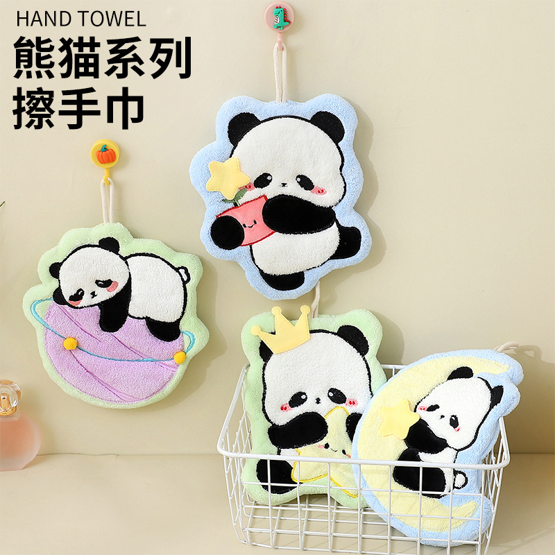 アニメかわいいパンダの手拭きタオルは柔らかい吸水性の厚いタオルサンゴのベルベット家庭用の手拭きタオルをかけることができる