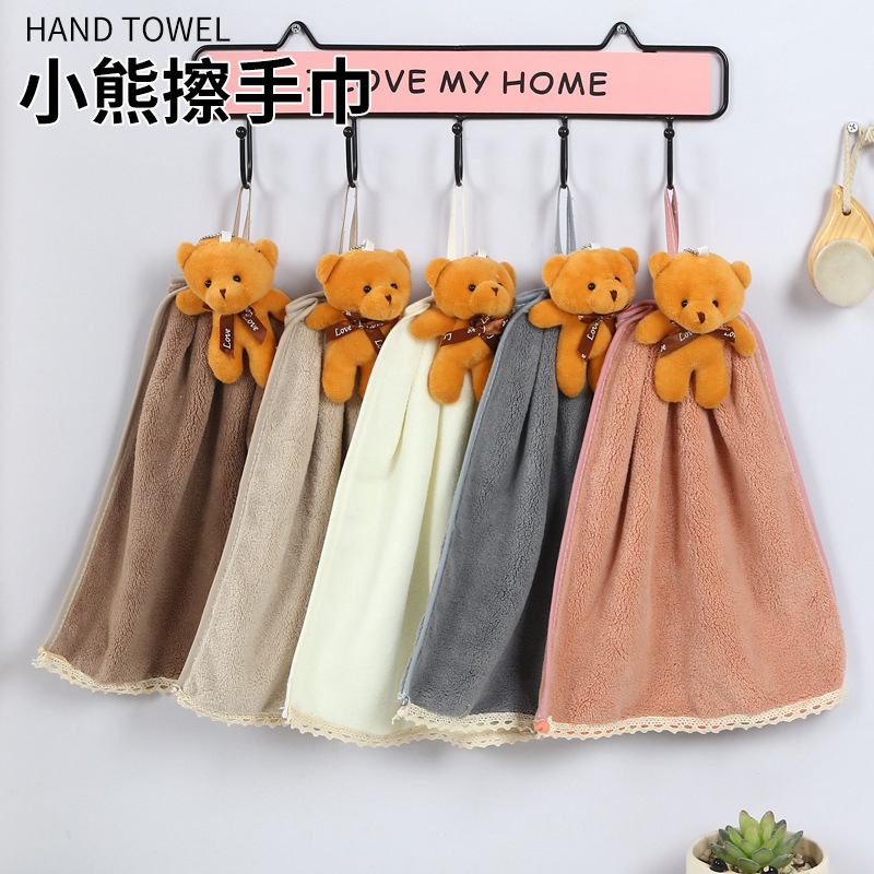 卸売りのサンゴの毛は掛け式の厚い雑巾のかわいい熊の手拭きの台所の浴室の吸水のタオルのテーブルクロスを拭きます。