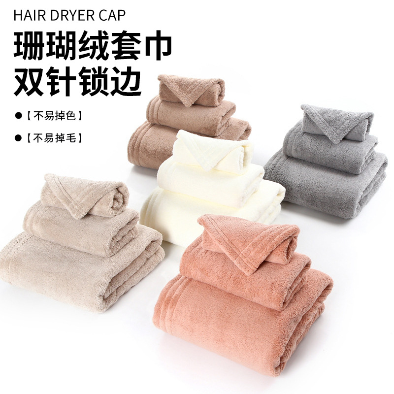 メーカー卸売りの二針鎖辺サンゴのベルベットのバスタオルの四角いタオルのギフトセットのタオルの四角いタオルのバスタオルの三点セット