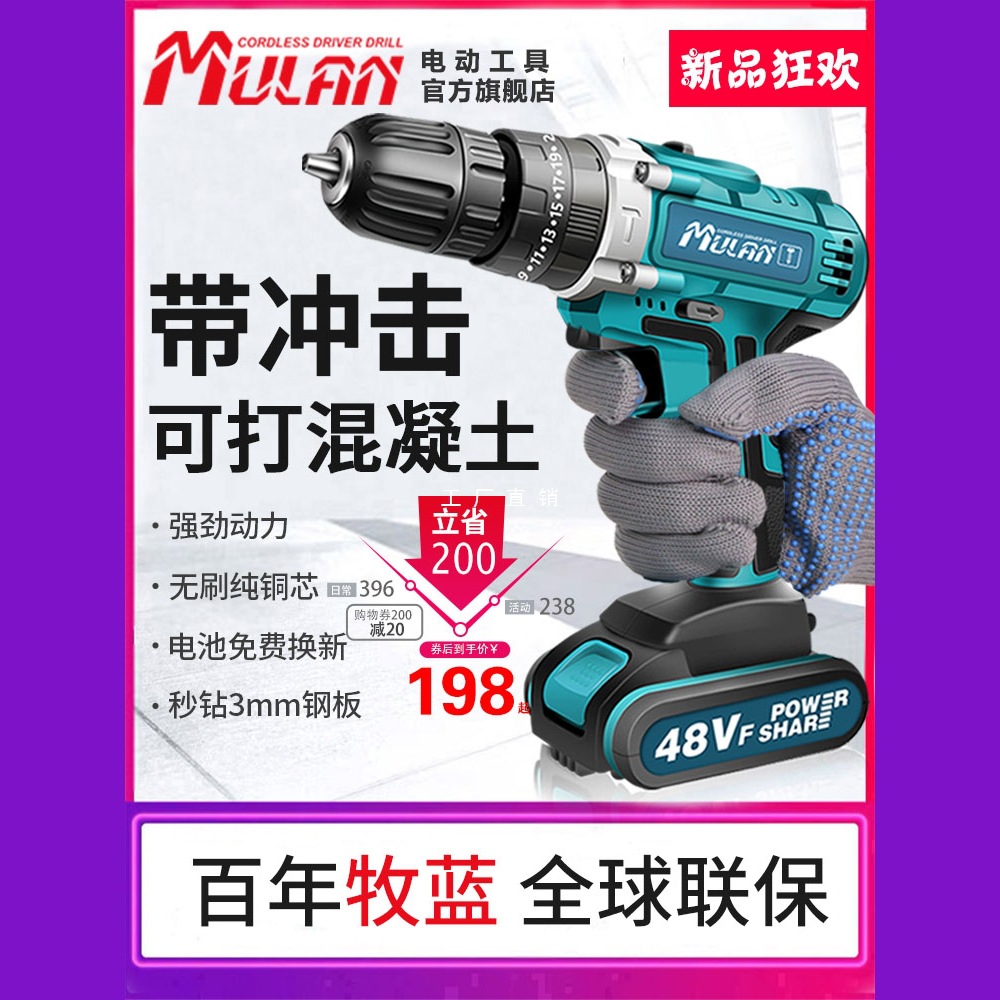 瞬一ブラシレス電気ドリル小鋼砲手動電気ドリル家庭用電動ドライバーツール充電式リチウム電気有