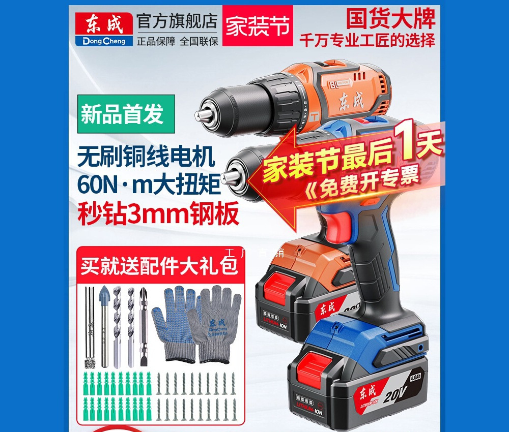 東成電気ドリル家庭用電動ドライバーブラシレスインパクトドリル東城リチウム電気充電ドリル電気回転