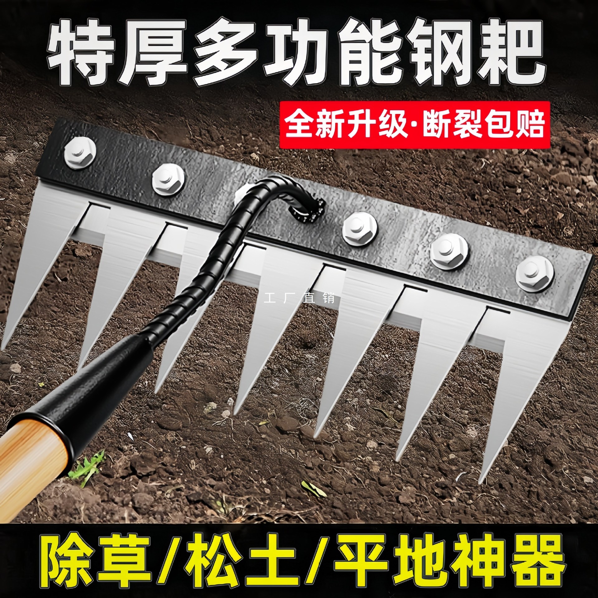 多機能除草レーキ、厚みのあるマンガン鋼の除草ツール、特殊ツール、農具、農業用鍬、ほぐし、小さなレーキ