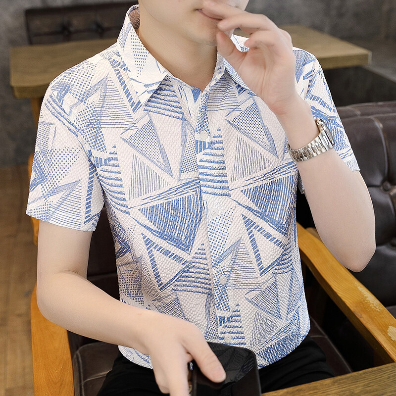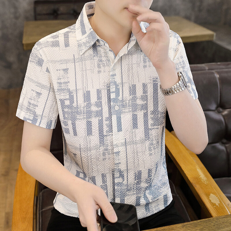 半袖アイスシャツ男性用夏の薄いカジュアル半袖プリントシャツ男性用ファッション