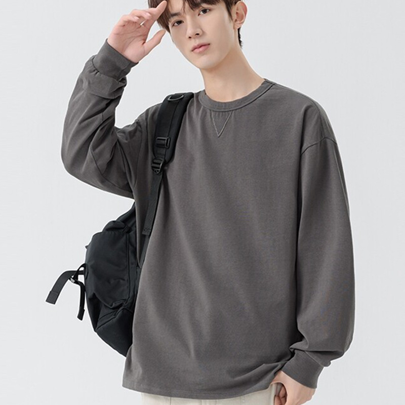 男性の長袖春と秋の純綿tシャツ男性のゆったりとした純色の上着に合わせて、新しい丸首のパーカーの男性服を着ます。