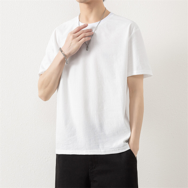 夏のtシャツ男性半袖丸首綿麻韓国版ファッション半袖男性モデル